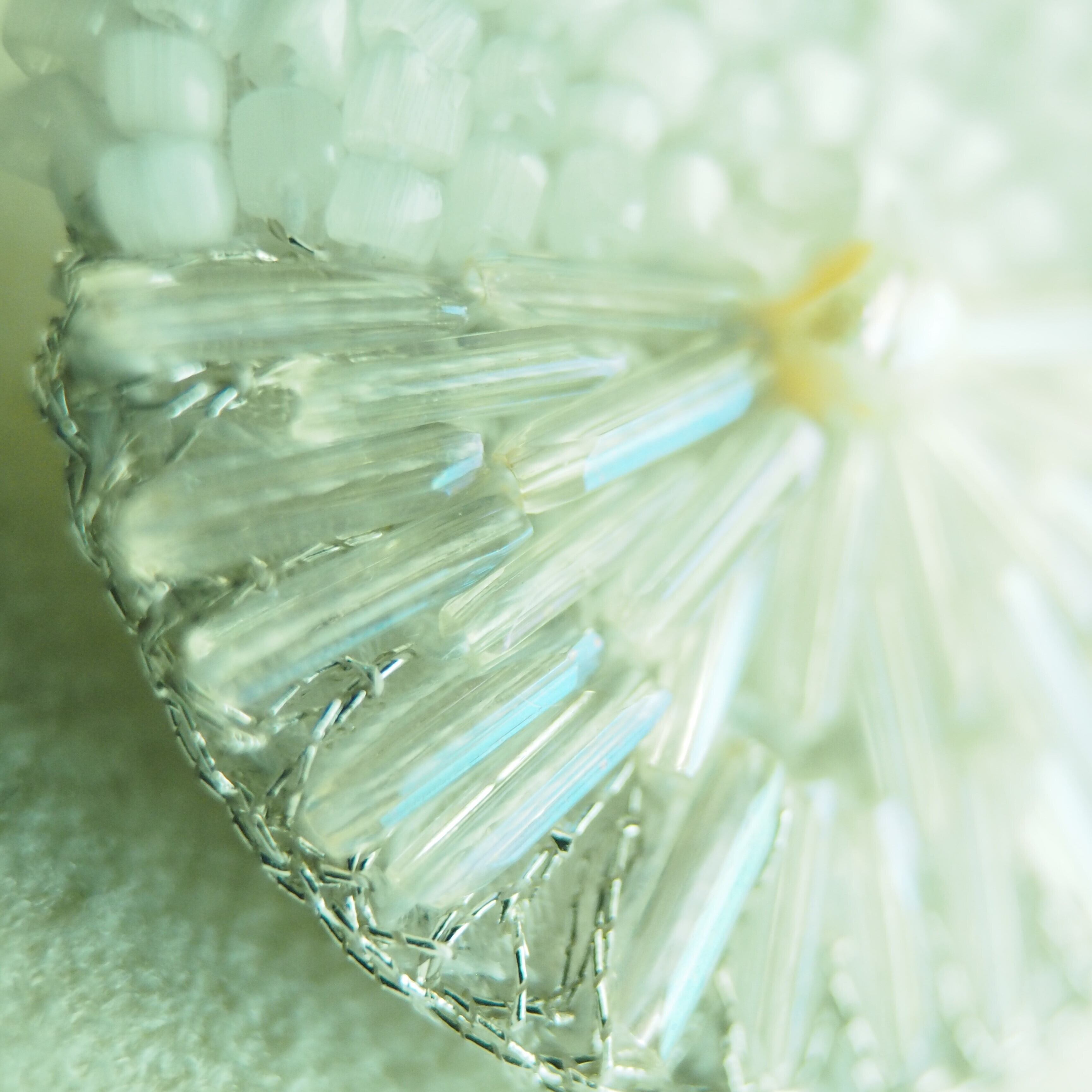質感の異なるホワイトの組み合わせが上品なブローチです。